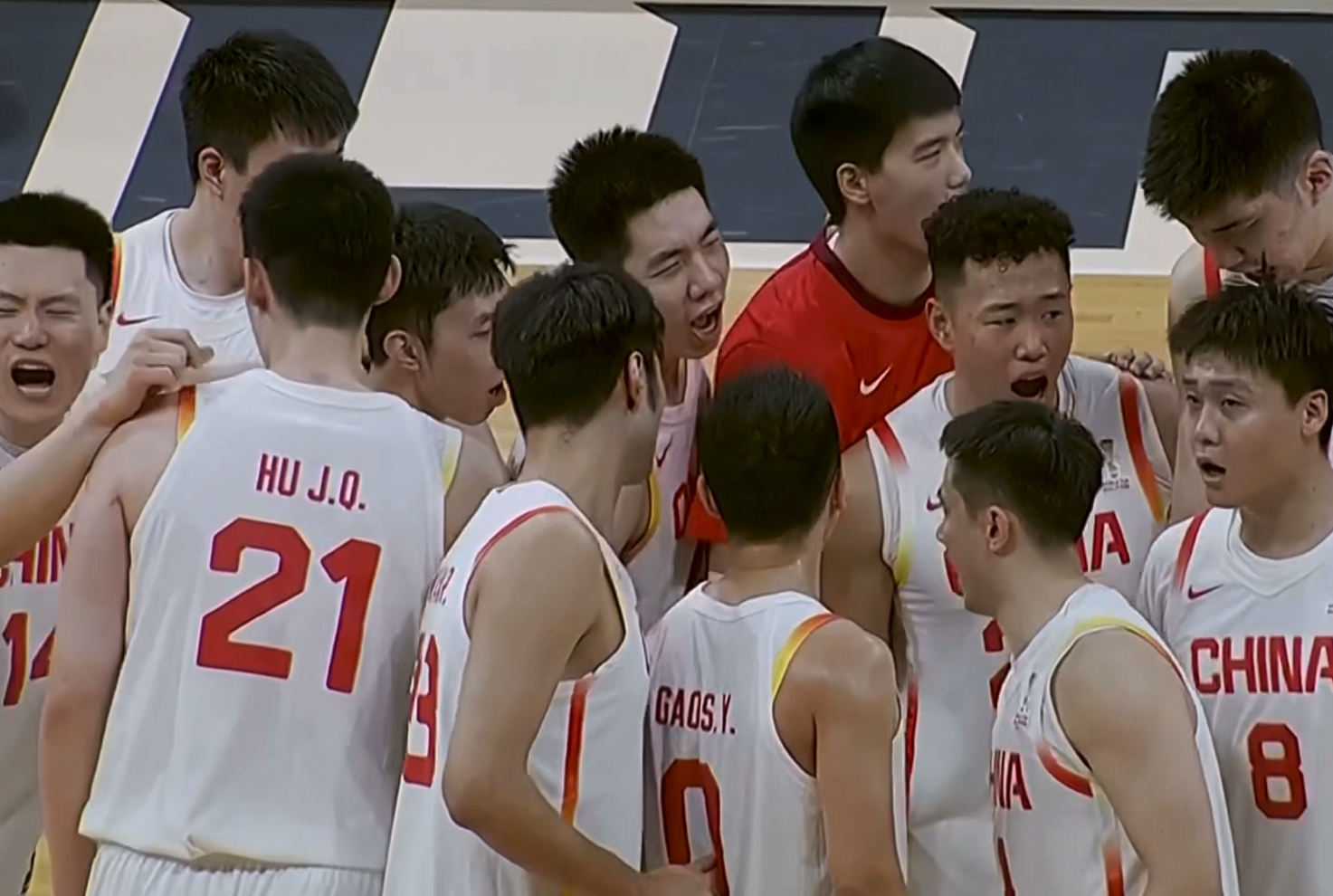 来到中圈,全队站在一起呐喊庆祝。当然呐喊的球员是赵睿,无奈的是,他在这场比赛的发挥非常糟糕。第三节开始疯狂出手,奈何命中率却一塌糊涂,最终造成的结果就是男篮进攻端全面劣势,还被对手拉开分差。可能这场比赛结束之后,赵睿需要好好反思一下自己的问题了。
